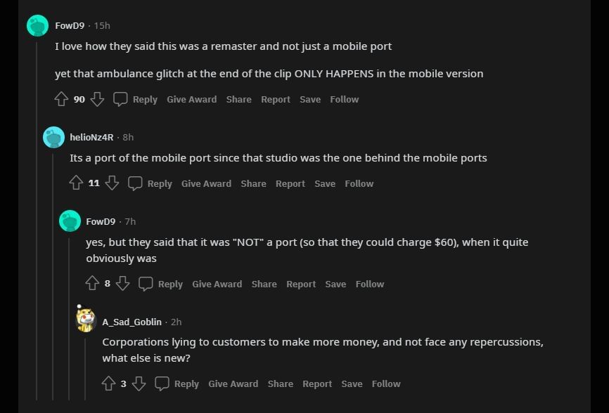 The mobile remasters were already criticized because of how broken they were, especially when they were ported over to PS3 and Xbox 360. Rockstar decided to remaster the mobile port, which was already broken, thereby triggering the GTA player base.