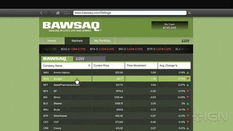 Note: Players need to invest BEFORE they carry out the assassination and AFTER the mission ends to maximise their profits. Players need to wait for 1 in-game day for LCN stocks to show changes, while BAWSAQ shows changes relatively quicker.