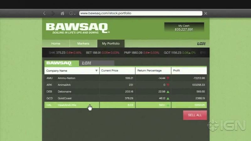 Investing your money before and after the mission by all 3 characters will result in you making a large sum of money without much effort. There are two listings in the Stock Market: LCN and BAWSAQ.