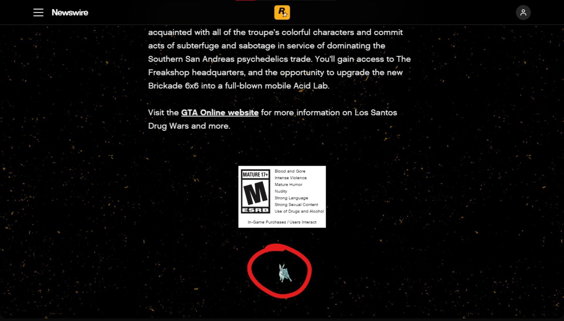 Additionally, Rockstar Games' official Newswire that talks about the Last Dose DLC even features the rabbit from the mission mentioned above.