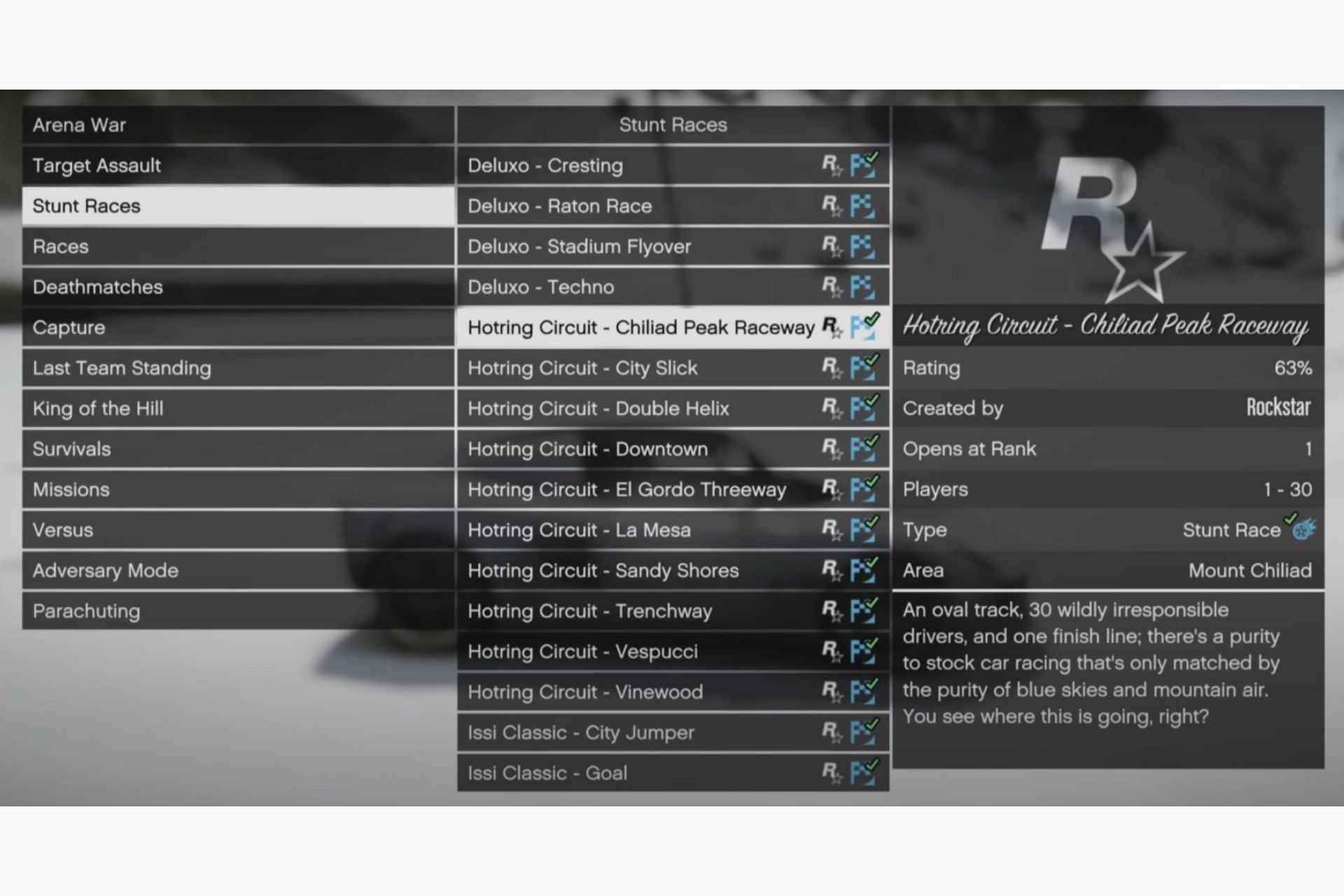 Once that's assured, join any kind of lobby in the game and start a stunt race. The following are the steps to start a stunt race in GTA Online: