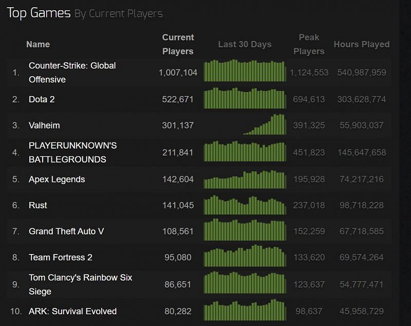 Steam Charts numbers