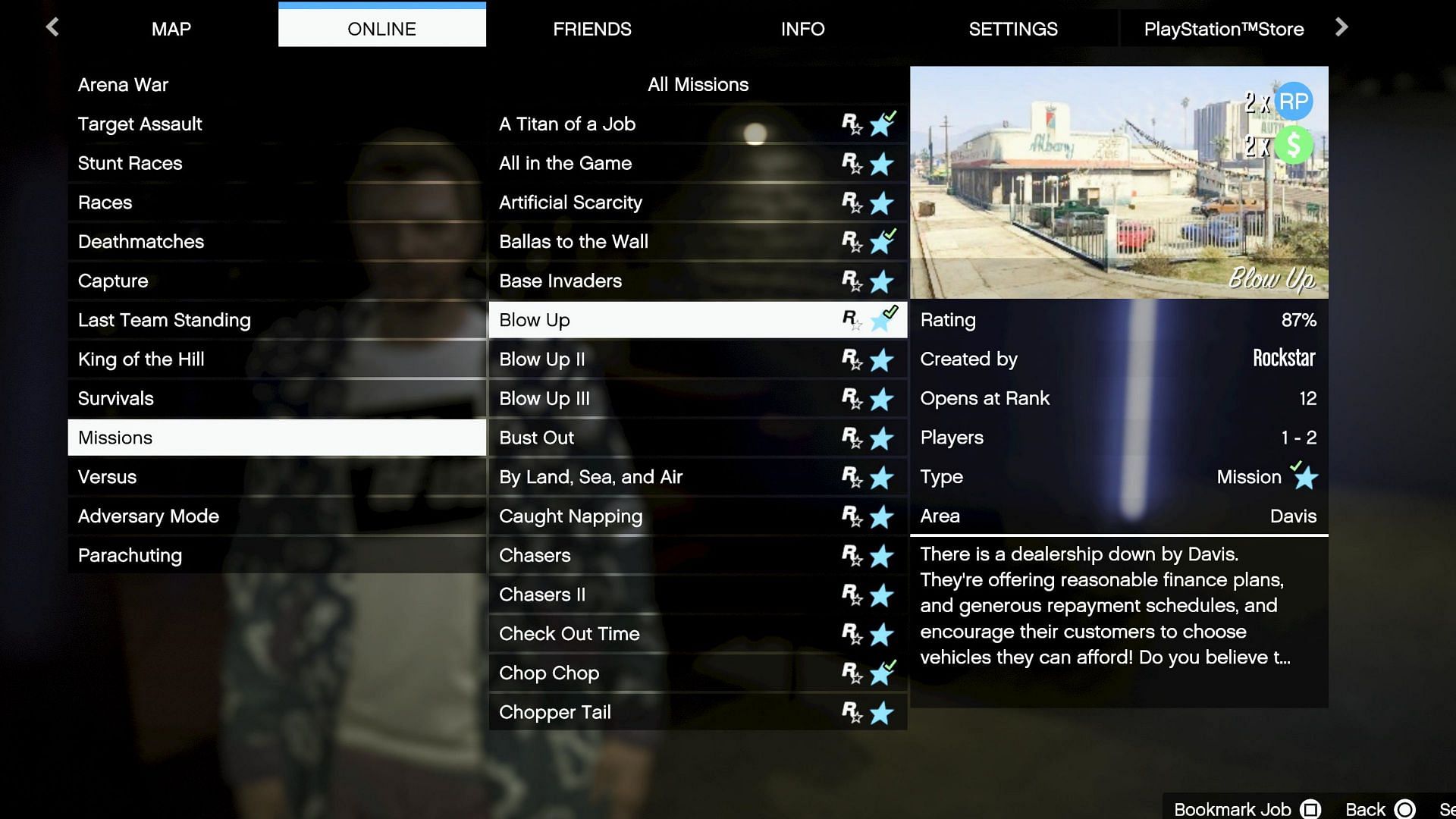 If it's an event week, then players should notice the 2x or 3x cash and RP bonus on the top right. Doing this method is far better than the alternative where he gives players a random mission. Some jobs are easier than others, with the original Blow Up being a prime example.
