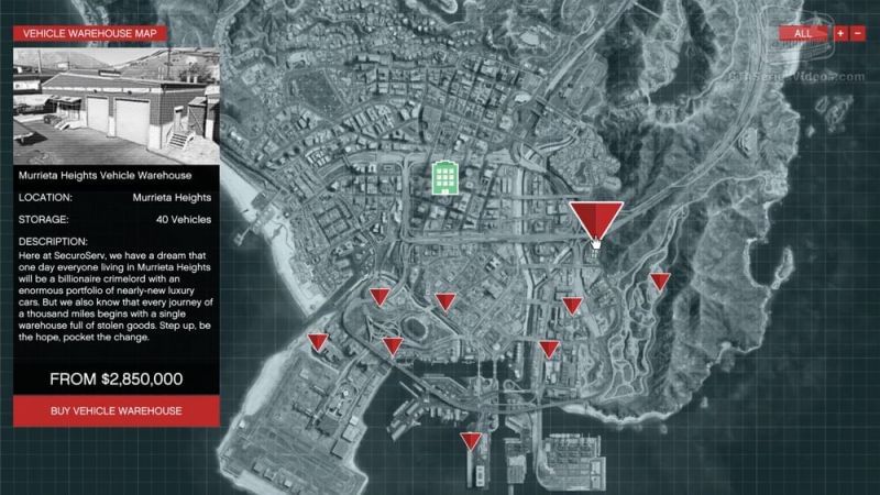 All vehicle warehouses function the same way, the only difference between them in the area they are located in. The cheaper warehouses are located in smaller areas with high gang activity and the expensive warehouses are located in nicer and safer areas of Los Santos.
