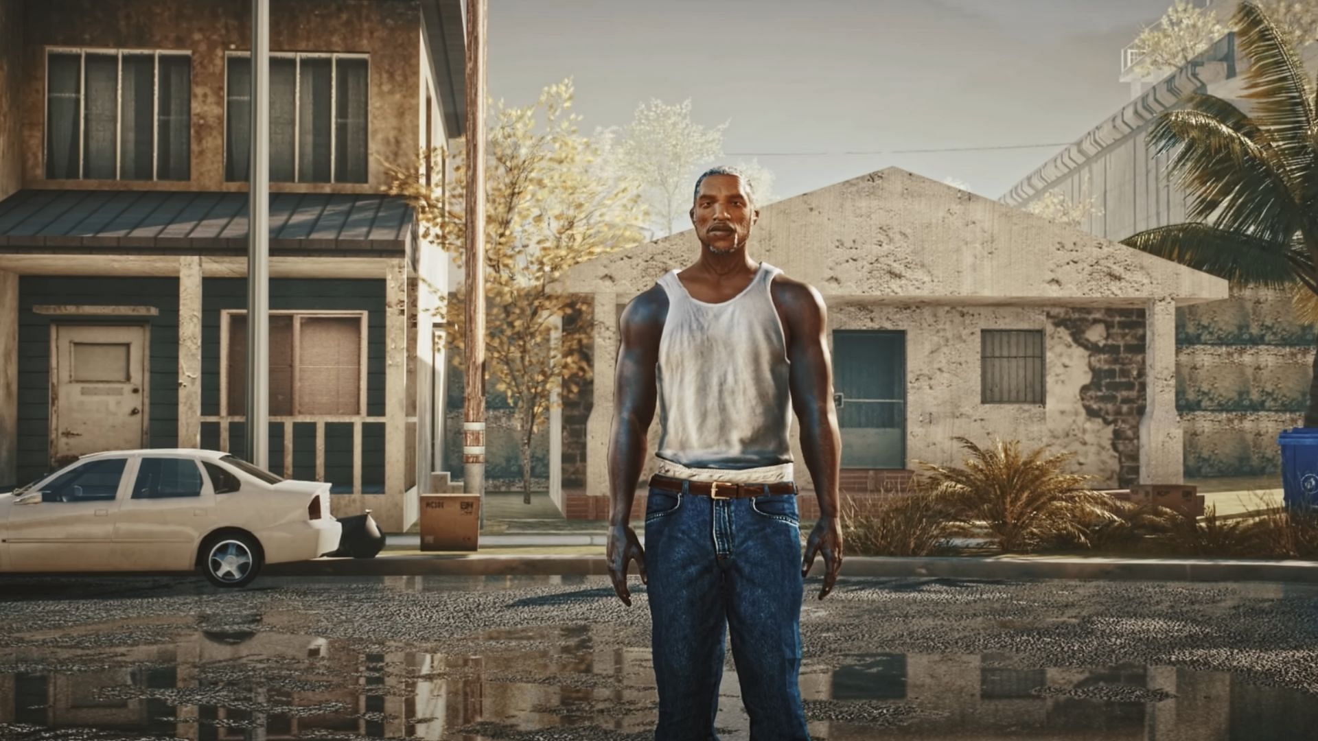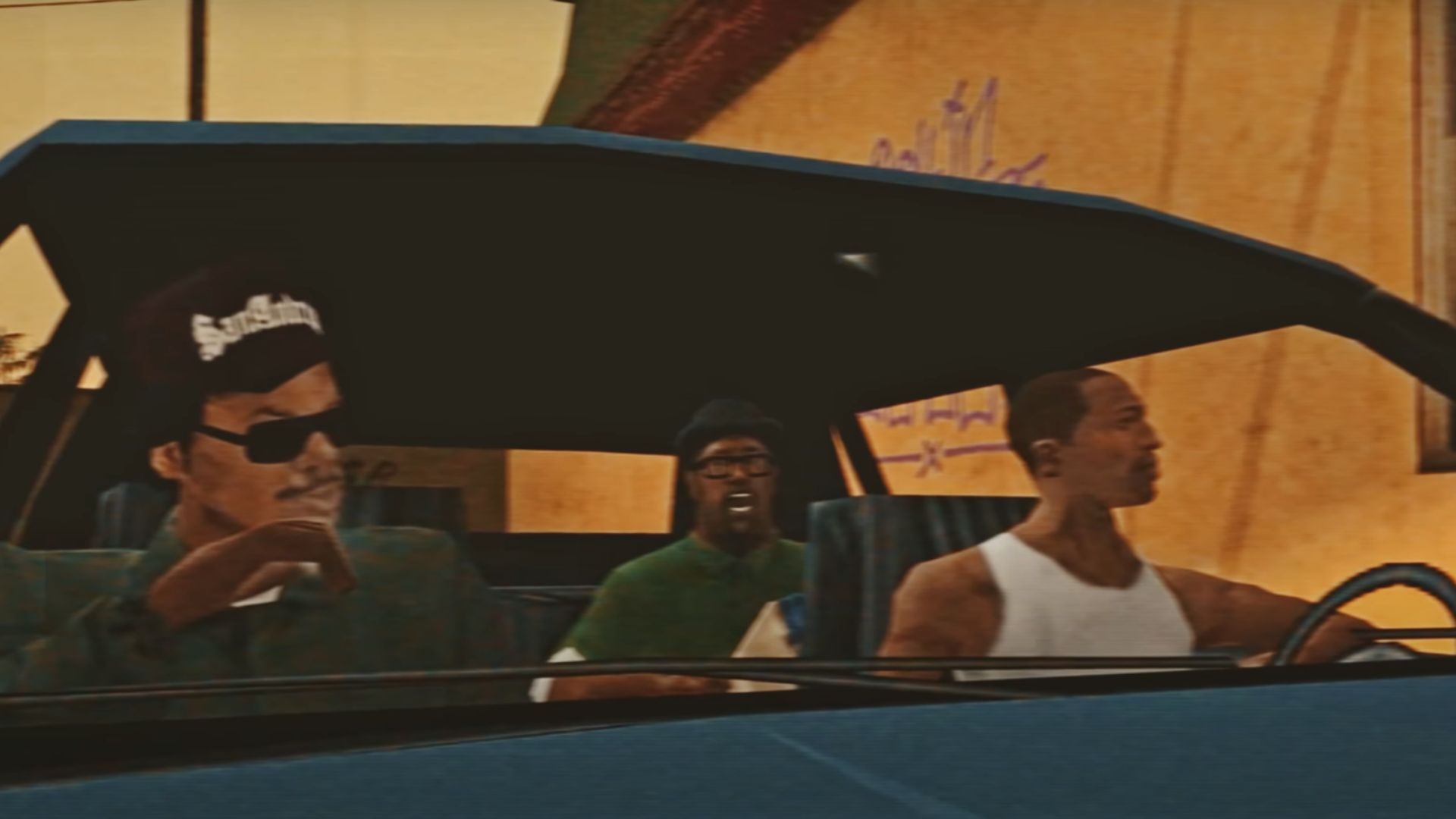 Fans eventually see an old CJ just chilling while some melancholic music plays. He gets into a taxi and starts remembering some good ole times, even as the world around him has changed.