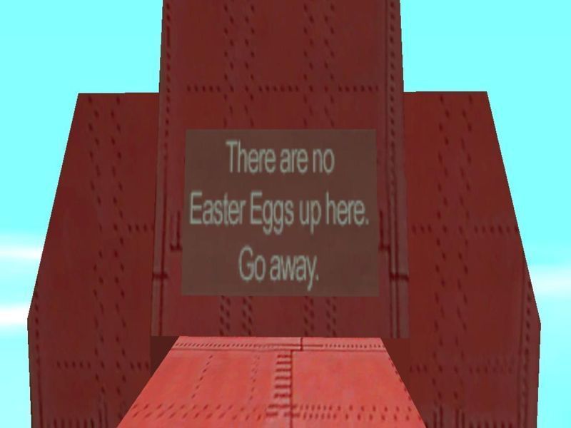 It's a simple sign at the top of the Gant Bridge that reads, "There are no Easter eggs up here. Go away."