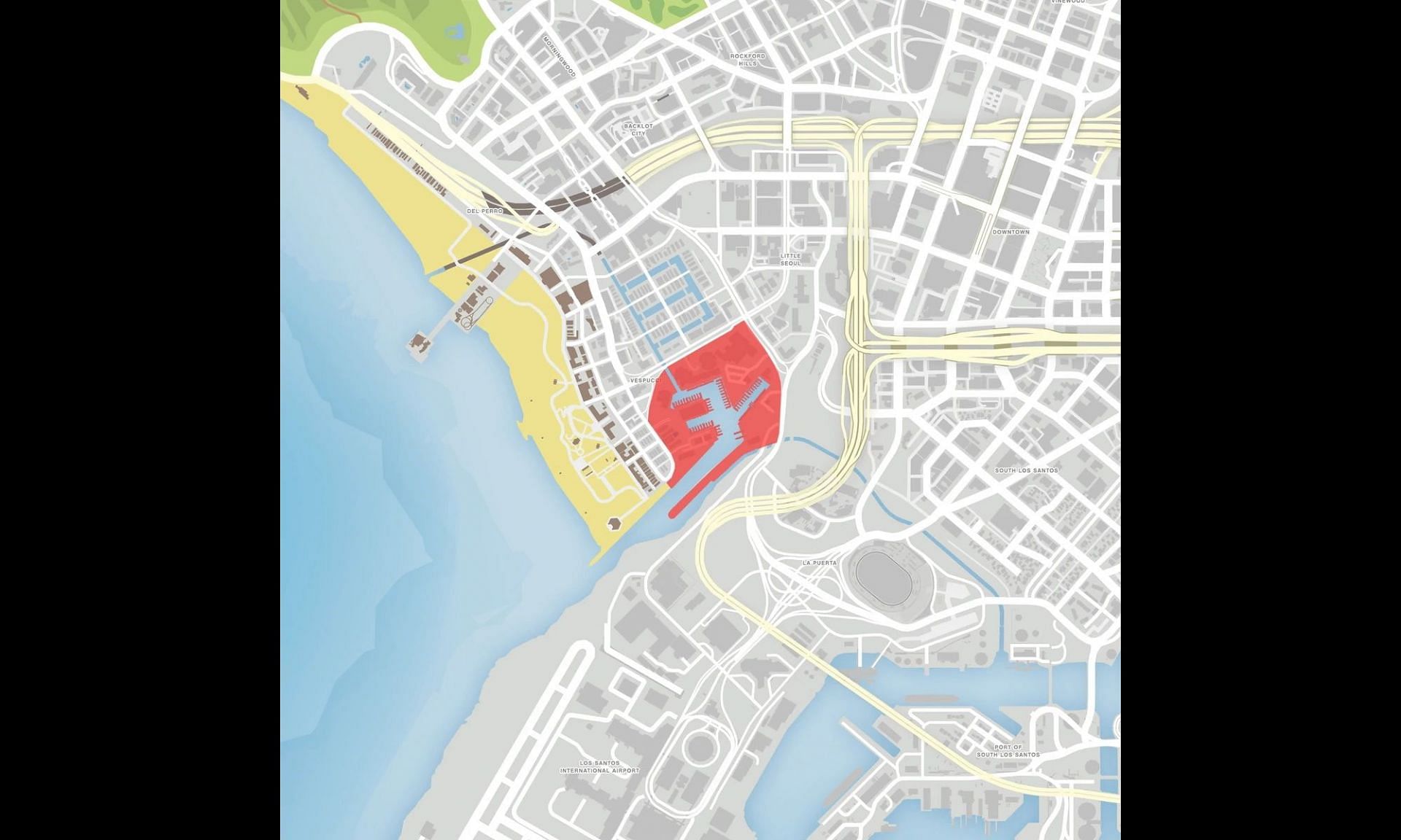 GTA Online players can find this harbor in Puerto Del Sol, Los Santos. The above image shows that it's right next to Vespucci Beach. There is a channel that goes directly into the Pacific Ocean. Whenever a player is on a boat, they can use this route to enter or exit the mainland.