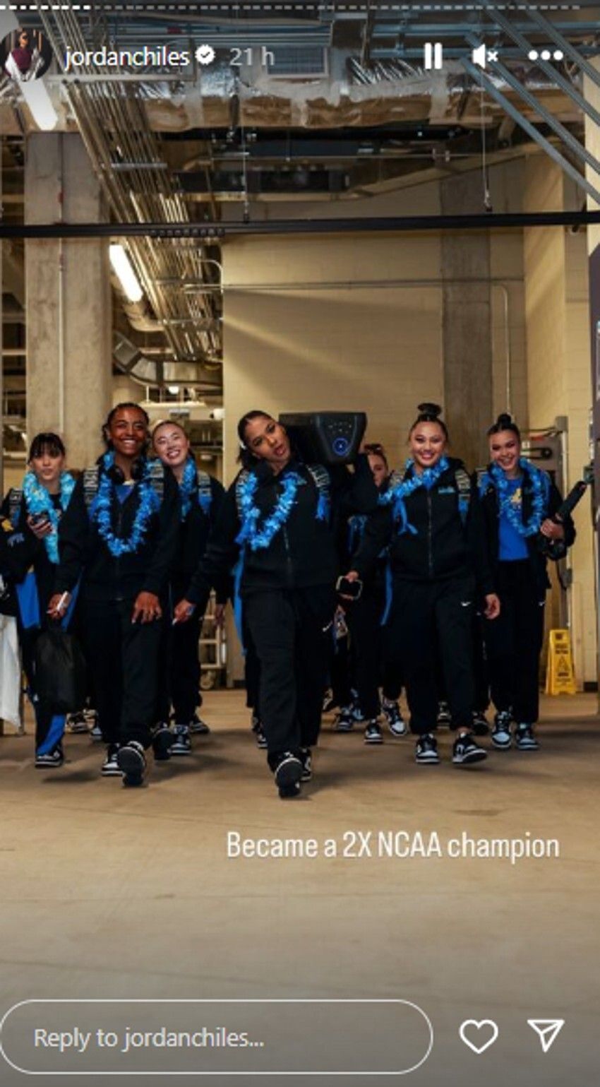 Jordan Chiles had an exceptional run in 2023. She was honored as the flag bearer to lead a 600-athlete squad at the 2023 Pan-American Games in Santiago, Chile, from October 20 to November 5, 2023, along with Kayla DiCello, Zoe Miller, Tiana Sumanasekera, and Kaliya Lincoln.