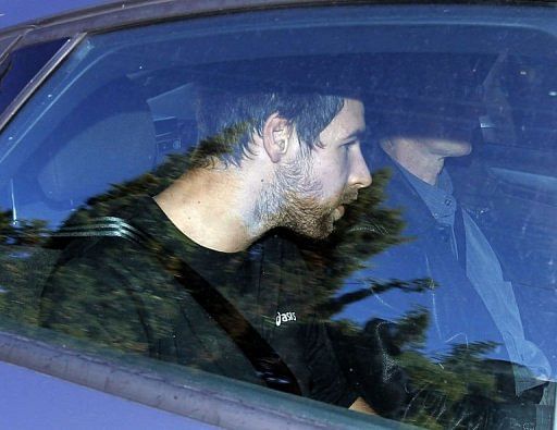 Luka Karabatic, one of the Montpellier handball players who have been rocked by allegations of match-fixing arrives at Montpellier’s courthouse, escorted by policemen, prior to a hearing with the investigating judge.