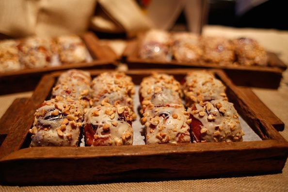 Soak about 2 cups of pitted dates in lukewarm water for about 15 minutes and once done, drain it out. Put the dates, half a cup of dried cranberries, quarter cup of blanched peanuts, quarter cup of peanut butter and half a cup of quick oats in a food processer and let it mix well. Once done, put this mixture on a baking tray and even it out. Put it in the freezer for about 20-25 minutes and cut them into pieces. These need to be stored in the fridge.