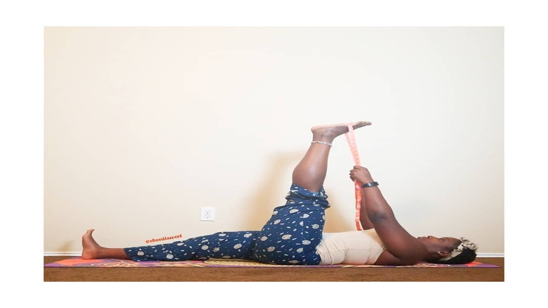 Loop the arch of your right foot through a strap. Flex your foot, and extend your foot towards the sky as much as you can. Your left leg can be bent or straight out on the mat.