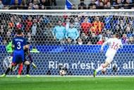 After 45 rather uneventful minutes, the hosts thought they had taken the lead when Antoine Griezmann headed the ball past David de Gea from close range. There was, however, an ominous pause while the majority of the crowd in the Parisian stadium celebrated, and after a delay of almost a minute the goal was chopped off as Layvin Kurzawa, who set up the striker, had strayed offside. Confusion reigned as they sought to work out what exactly had happened.