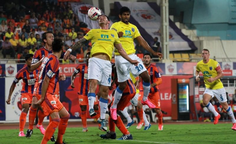 FC Pune City saw off a fighting Kerala Blasters 3-2 in a thoroughly entertaining clash that witnessed as many as 4 headed goals, including the fastest goal of ISL season 2. Kalu Uche and Mohammed Rafi both scored braces for Pune and Kerala respectively, but it was Tuncay Sanli who eventually won the game for FC Pune City with a textbook header from a Nickey Shorey cross.The win sends FC Pune City to the top of the standings with 12 points while Kerala Blasters remain at the foot of the table with just 4 points. Here are the major talking points from match number 22 of the Hero Indian Super League 2015 held at the Shree Shiv Chhatrapati Sports Complex Stadium, Pune.