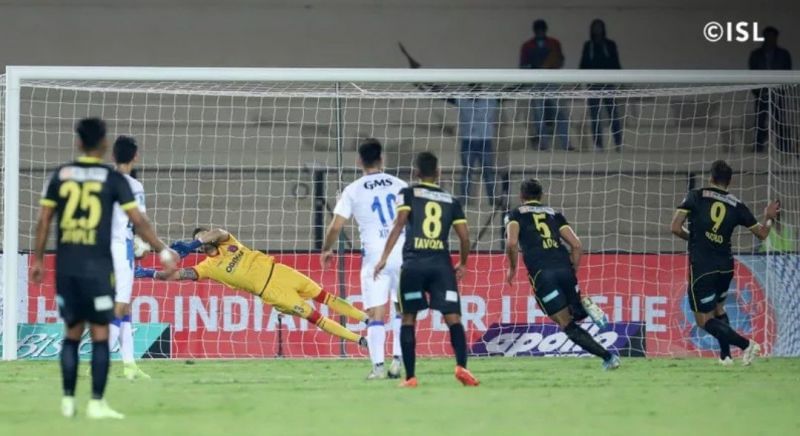 This penalty was awarded by referee R Venkatesh after Bhagat made a high boot challenge on Aridane Santana while trying to clear a cross. This poor challenge not only earned him a second yellow and red card but also resulted in a penalty for Odisha FC.