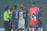 A lot of fouls were also at times given and not given which hampered both BFC and NEUFC. The play that lead to Bengaluru's equaliser also had an element of doubt as it looks like Reagan could have been fouled but the referee waved play on.