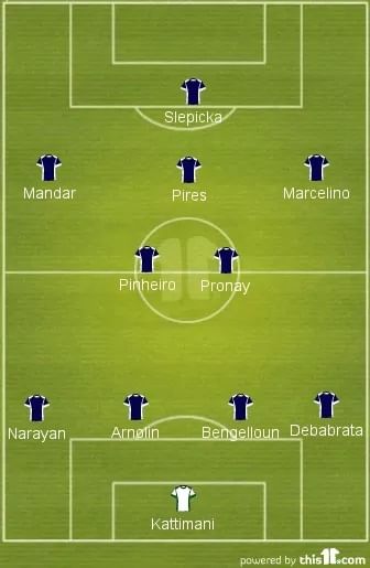 Likely XI: Kattimani; Debabrata, Bengelloun, Arnolin, Narayan, Pinheiro, Pronay, Pires, Santos, Marcelino, Slepicka
