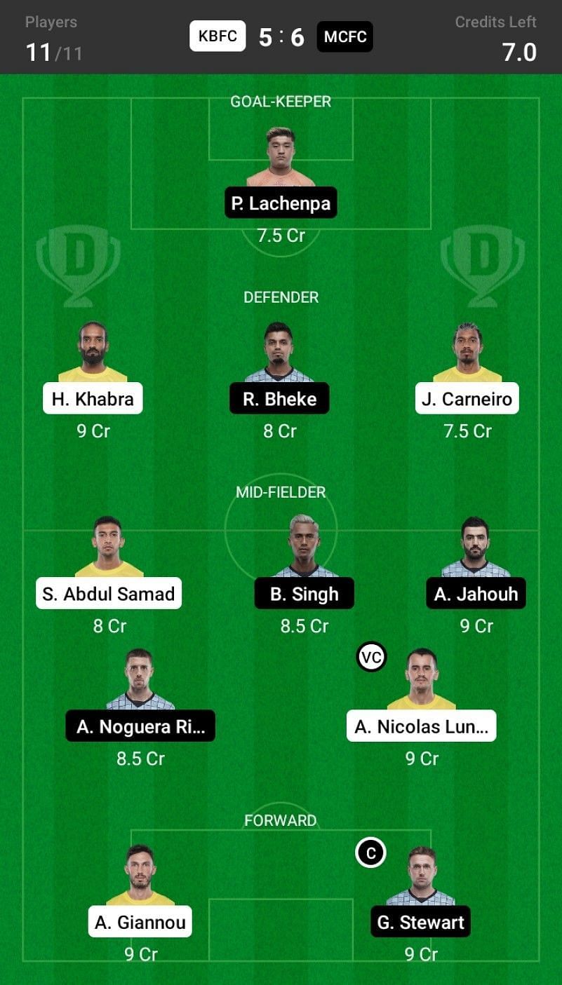 Kerala Blasters FC vs Mumbai City FC Dream11 Fantasy Suggestions