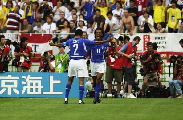 Three years later, the attacking midfielder would play in his first senior World Cup in Japan and South Korea where he once again scored two goals and as many assists. His first goal was a spot kick against China and his second was a looping free-kick against England in the quarter-finals. Brazil won the tournament by defeating Germany 2-0 in the final and this time, Ronaldinho was named in the Team of the Tournament.