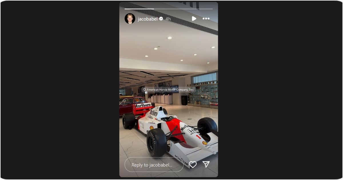 The 24-year-old, who visited the American Honda Motor Company office in California, shared a snapshot of the former Brazilian driver’s 1991 McLaren MP4/6 car. In the #1 car, Senna won seven Grand Prix races and clinched his third and final drivers' championship title in 1991.