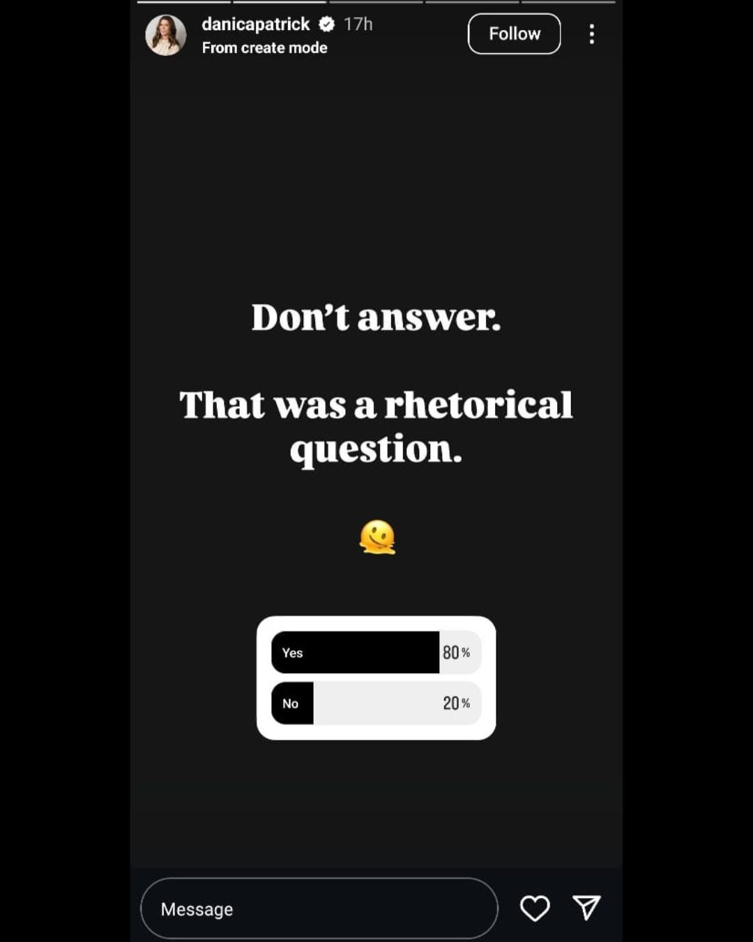 She followed the story with another one where she posted a poll with yes or no as the options, stating that it was a rhetorical question.