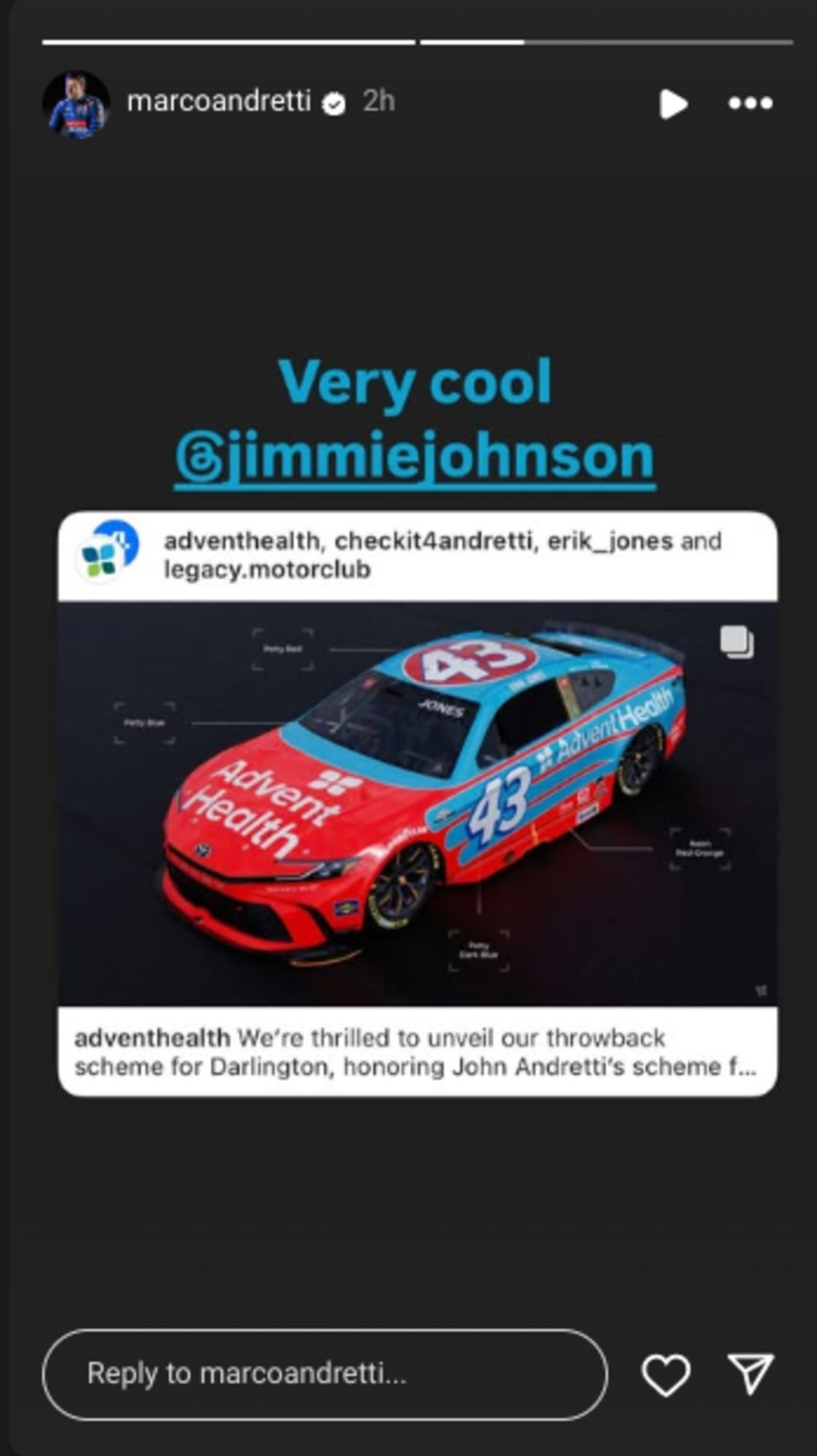 While Marco Andretti has given his take on Legacy Motor Club's Darlington tribute in accordance with John Andretti's 1998 color scheme, it was announced by Andretti Global almost three months ago that he will drive for them at this year's Indianapolis 500.