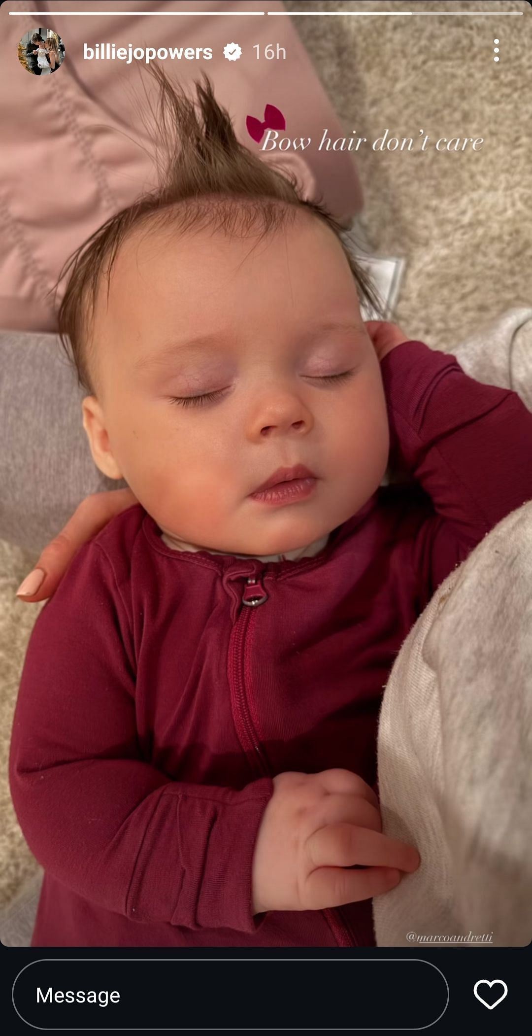Former IndyCar star Marco Andretti's girlfriend Billie Jo Powers recently shared an adorable snap of their daughter Miura on her social media. Andretti's daughter recently turned four months old.