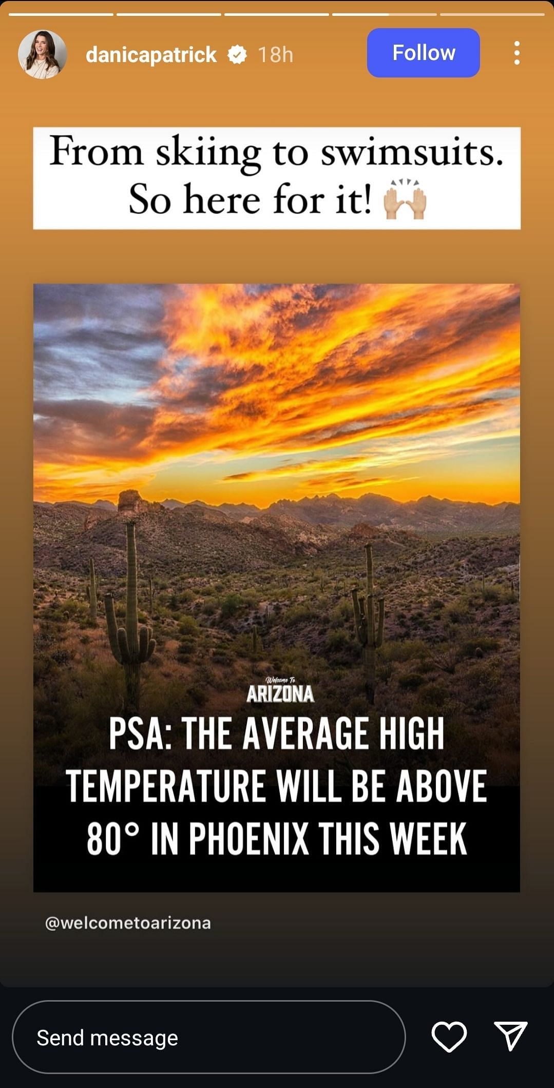 Former IndyCar driver and motorsport analyst Danica Patrick recently voiced her opinion on the rising temperatures in Phoenix, Arizona. Patrick's words came as Phoenix encountered its first 90-degree day of the year.