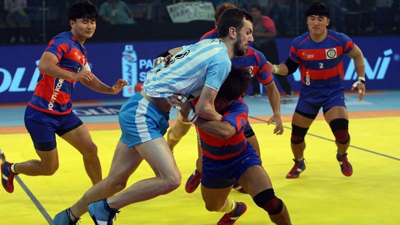 Jae Min Lee produced a moment of magic during one of his raids when he managed a 'Super Raid' notching four points for the Korea Republic side. The feisty raider buckled down and hustled his way across the mid-line despite being swarmed by the Argentina defenders who had him held down from the top to the bottom. Jae Min Lee's resilience and quick reflexes allowed him to just about reach the line and score the raid points for his side.