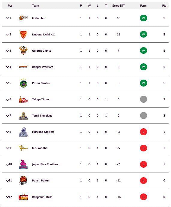 After some enthralling action on the second day of the Pro Kabaddi League 2021, the points table has seen quite a bit of change, with all 12 teams having played a solitary encounter each.