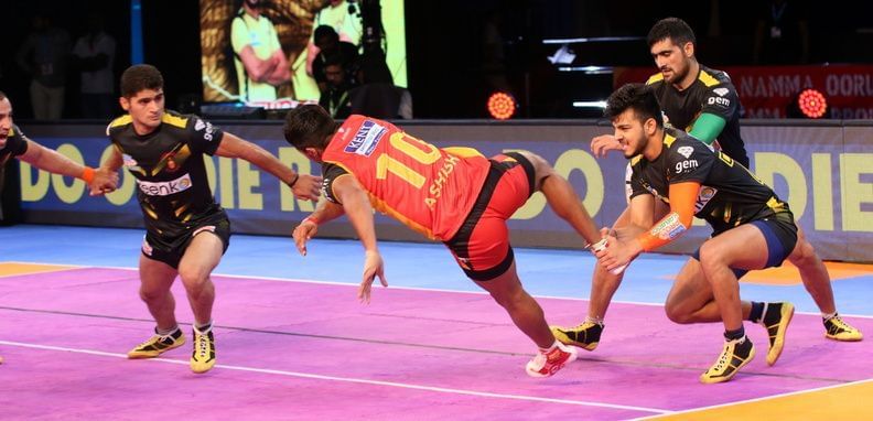 The 20-year-old left-corner, Vishal Bhardwaj scored just six tackle points in his debut season in PKL 4. Despite featuring in just two games for Telugu Titans, he got picked up once again by them as a new young player. However, he wasn’t expected to start many games in presence of experienced left-corner, Amit Singh Chhillar. But, he did quite well in during training sessions and cemented a place in the Telugu Titans starting 7 since the very first game.