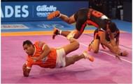 Girish has dominated the defense totally -- be it ankle holds, waist holds or muscular body blocks. He is a veteran of the game and masters these moves pretty well. In his career of 69 matches in Pro Kabaddi, he has 172 tackle points, averaging 2.5 tackle point per match.