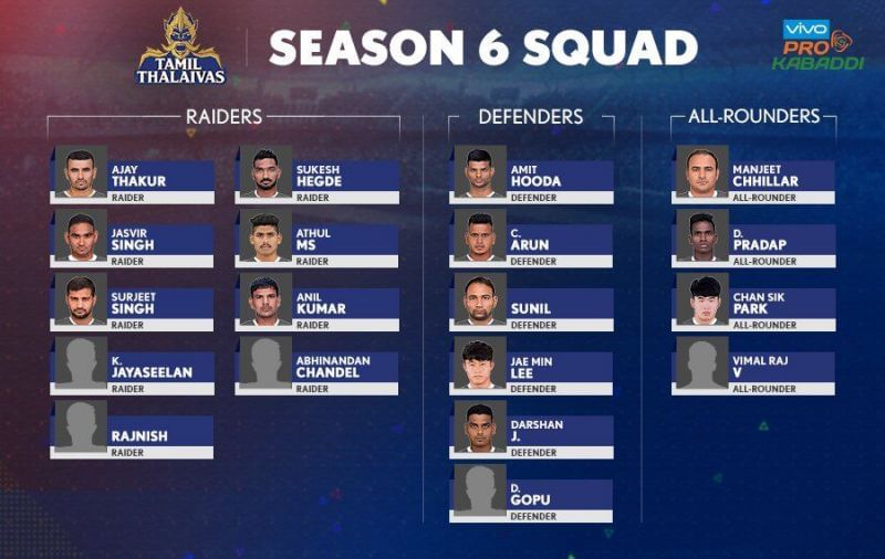 Thalaivas retained Ajay Thakur, C. Arun and Amit Hooda which was a really smart move made by the team. After the auctions ended, their team looked like a dream team.