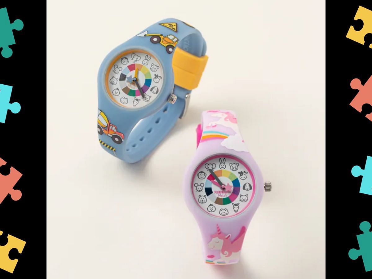For $26.21, these watches make learning to tell time easy and fun. They use colors and glow-in-the-dark animals instead of numbers, ideal for preschoolers. The watches are shock- and water-resistant, and come with a flexible silicone band, featuring unicorns and rainbows or trucks and construction gear.