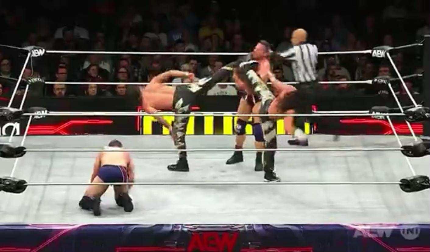 Hiromu Takahashi and Sky Flight defeat The Don Callis Family via pinfall.