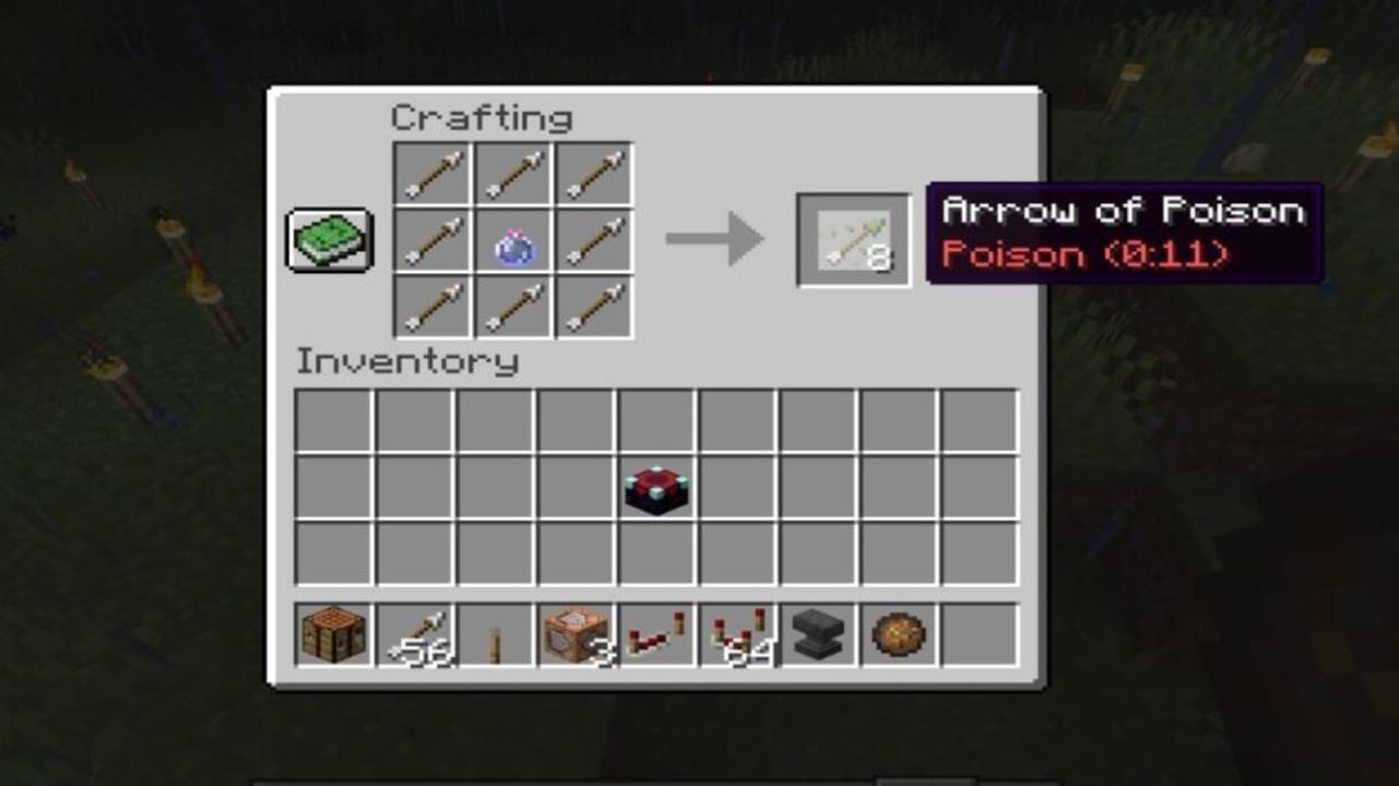 Any Minecraft players who have dealt with cave spiders or bees likely know the annoying status effect of poison, and this arrow type turns that annoying status back on hostile mobs. Although certain enemy mobs are immune to the poison effect (undead and spiders primarily), it is still an effective arrow type when battling most opponents.