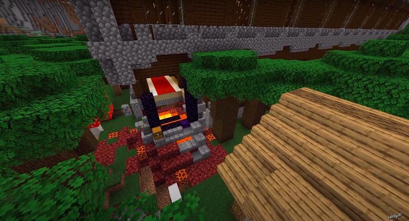 These structures merge almost perfectly together. The portal acts as an enchanted entryway leading from the village into the mansion. Minecraft players who choose to play on this seed will surely be off to a great start thanks to this unique world generation.