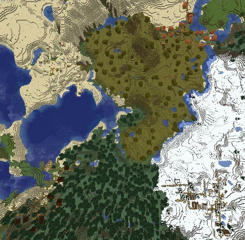 This Minecraft seed is a village enthusiast's dream. Right at spawn, gamers will find four biomes: desert, savanna, taiga, and snowy. Each of these biomes has its own village.
