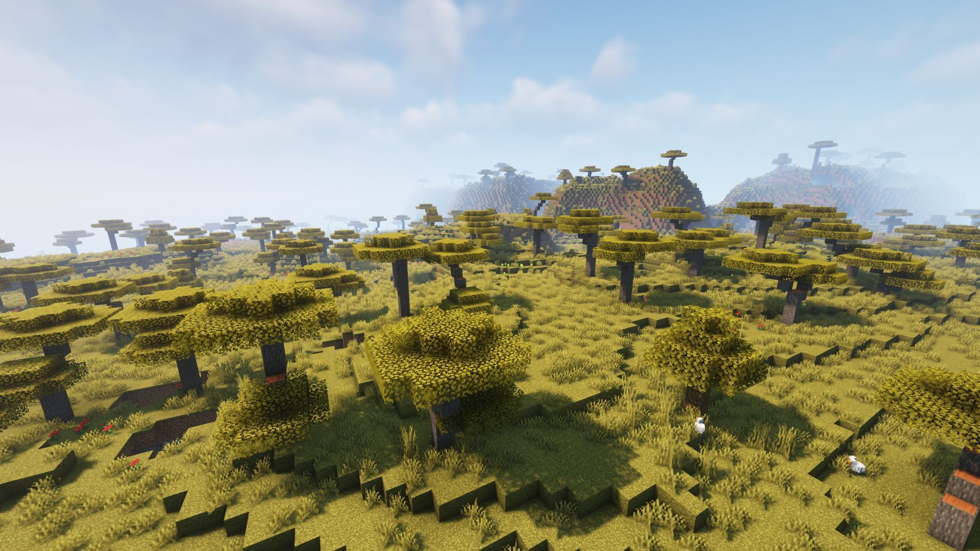 Savanna biome has some of the best-looking villages and trees. Like plains, dense forests do not generate here. Players who enjoy building and living in weirdly generated areas would love to live in the shattered variant of the savanna biome. Many floating islands and other unusual world generations can be seen there.