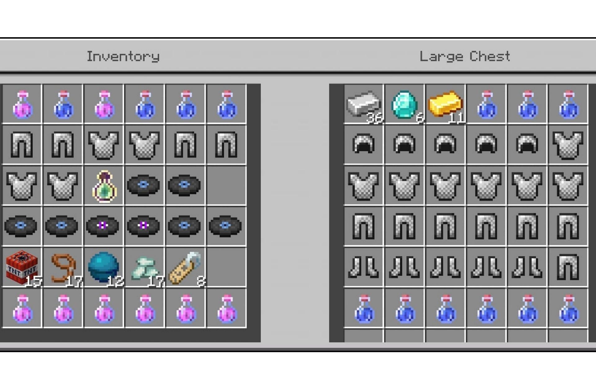 There is also a Ruined Portal near spawn, which players can also loot. There are a total of 12 buried treasure chests on and around the spawn island. From these chests, players can acquire plenty of iron, diamonds, gold, potions, music discs, TNTs, name tags, leads, heart of the sea, prisamarine crystals, and chain armor for various uses.