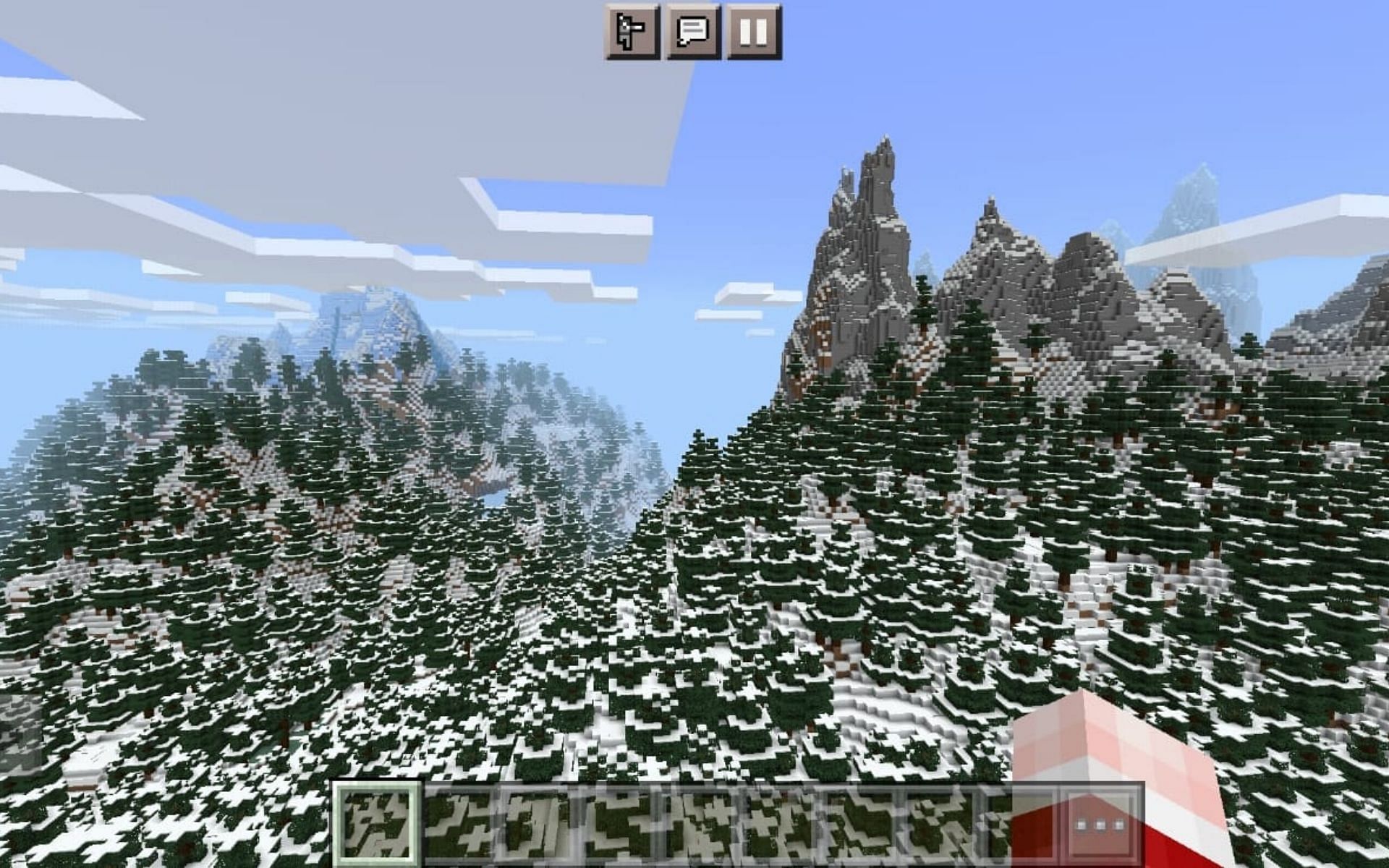 This is a very good place to build a hidden base as it would be difficult to see the base in this lush area but beware of powdered snow. The area also has many cave openings for players to explore and mine for resources. However, one downfall is the scarcity of food, and hence players will have to roam out of the spawn area to look for food.