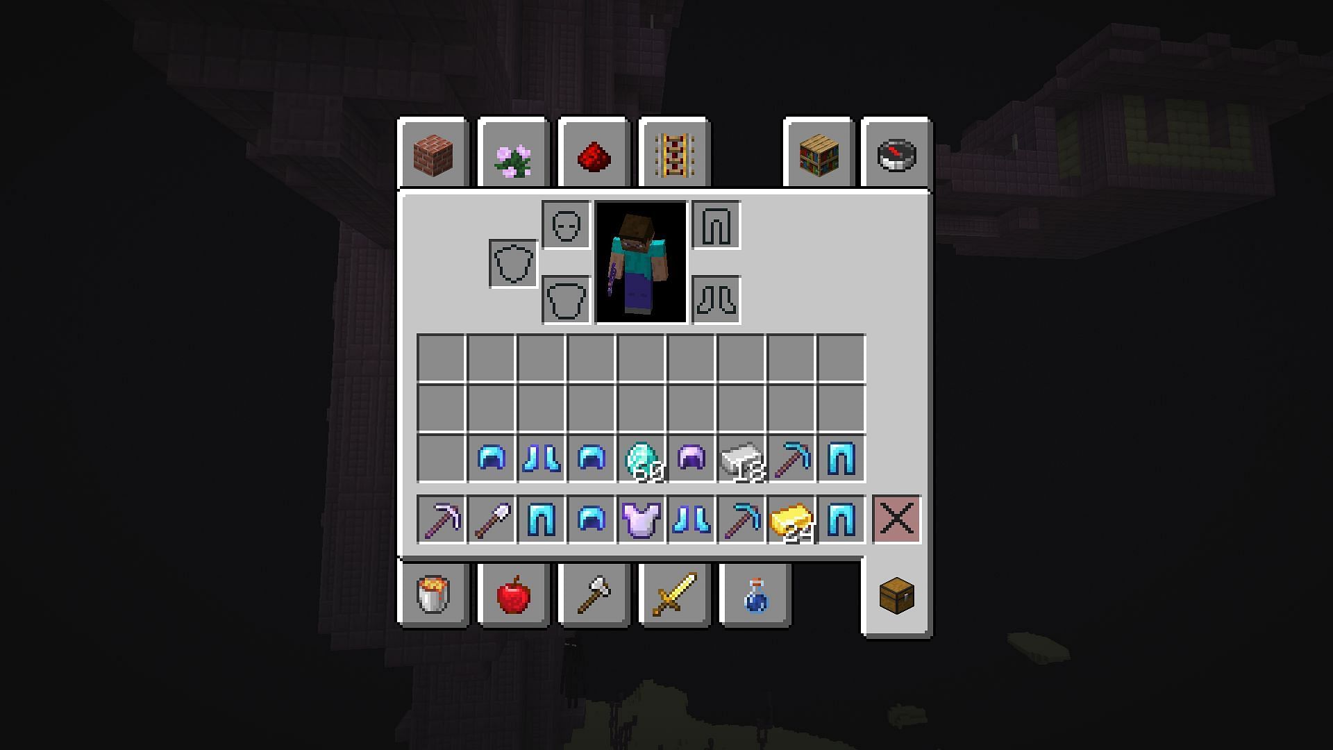 This Java seed generates an end city at 92, 60, -2265 that has phenomenal loot. From its chests, players can acquire sixty diamonds and many enchanted diamond tools and armor items.
