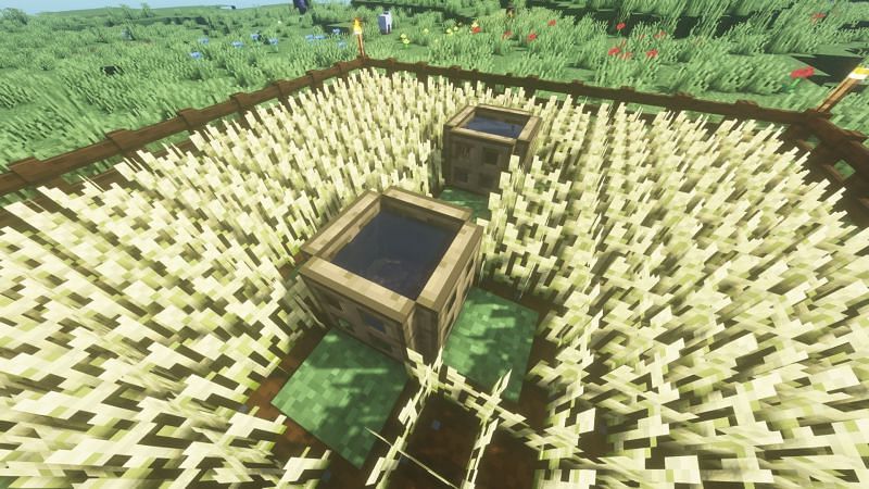 The best part about building a simple wheat farm is that it does not require much time or effort, and players can even create it on the first day of their survival world. This can be of any shape as long as the water source reaches all farmland blocks. Water sources can reach up to farmlands that are four blocks away and indirectly in contact.