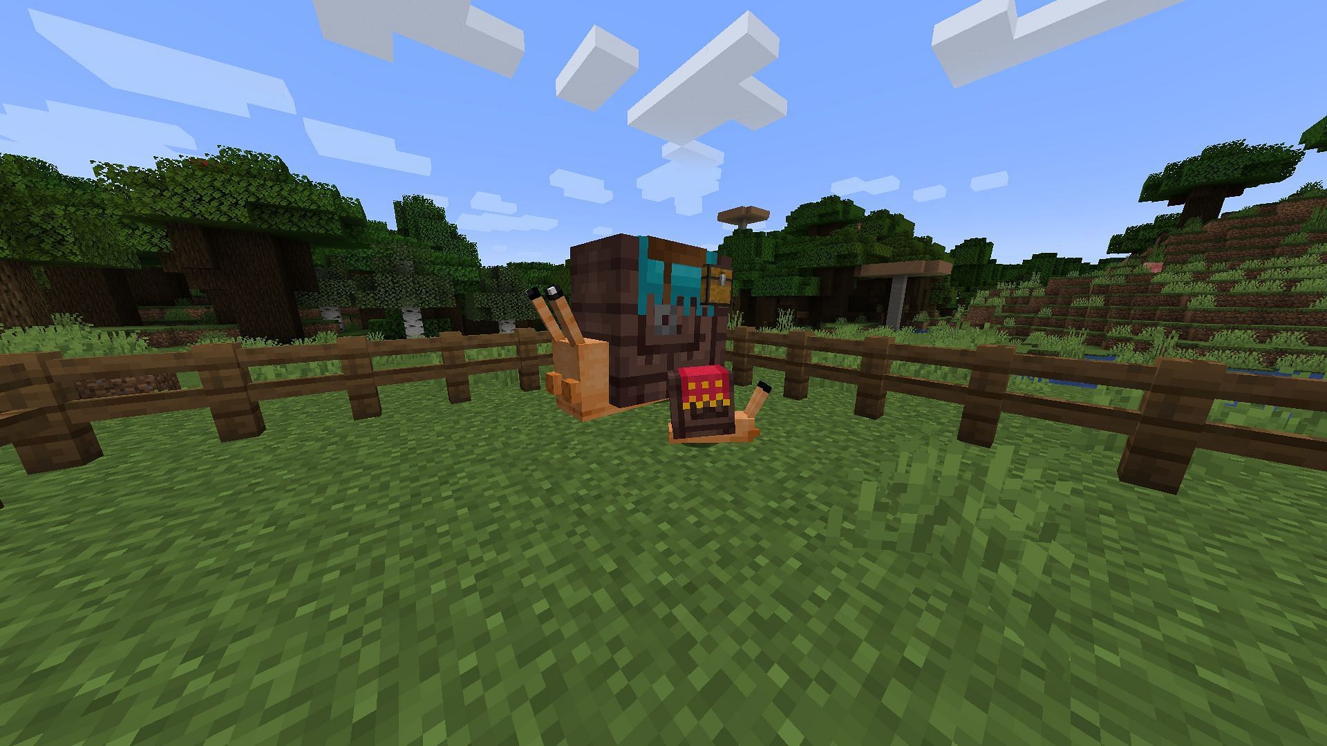 This mod adds snails to Minecraft. If snails are attacked or close to a hostile mob, they will hide in their shell. They can be tamed using mushrooms and can be decorated using carpets.