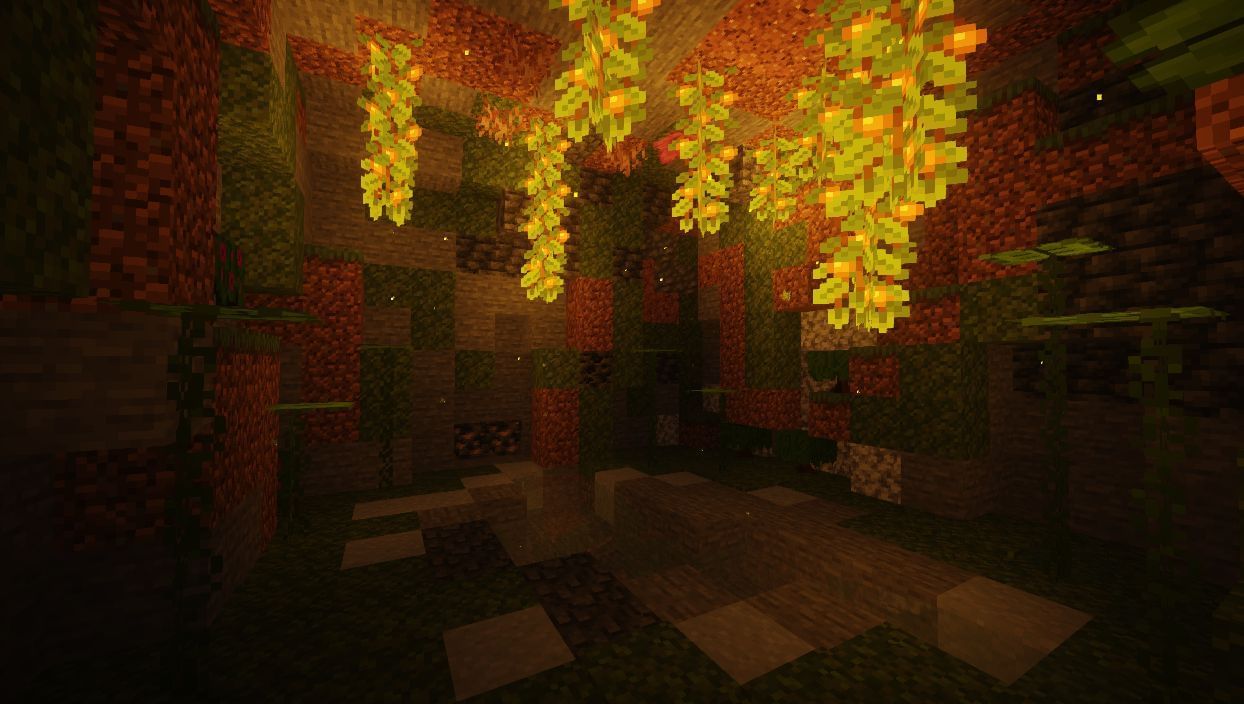Completely opposite to the first cave biome is the calm and alluring Lush Cave Biome. In this biome, Glowberry vines hang from the ceiling, illuminating the small Azalea bushes and drip leaves on the ground. Cute looking Axolotls can also be found in small water pools. All of this makes Lush Caves the best biome in Minecraft 1.18 update to explore and hang out.