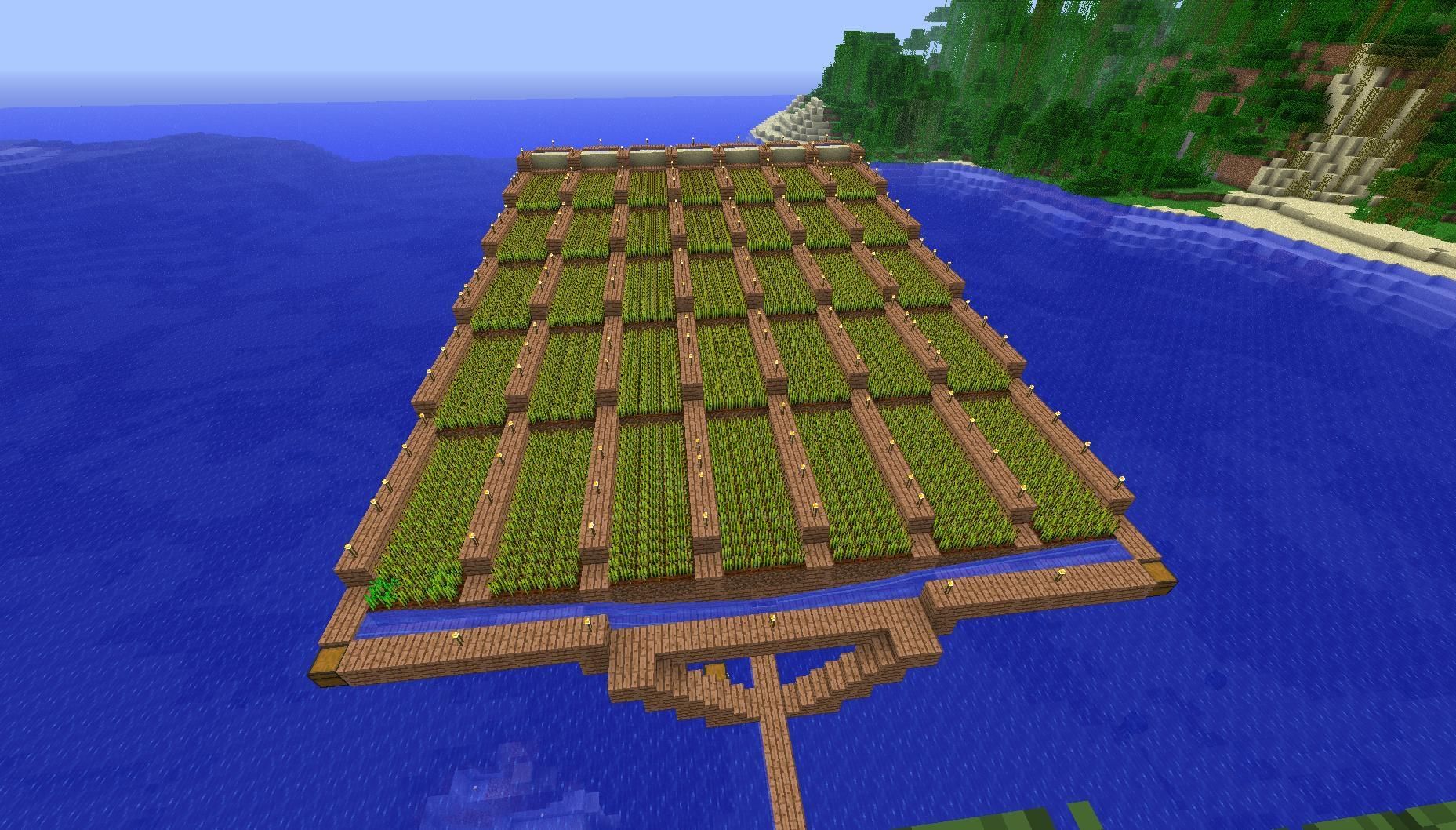 Since water is the main catalyst for growth for standard crops, simply sinking a constructed farm partially into a lake or pond can save players the trouble of gathering water bucket for placement.