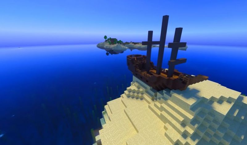 The island with this shipwreck could be a perfect spot to make a remote base or even enjoy a stranded, themed island adventure in Minecraft.