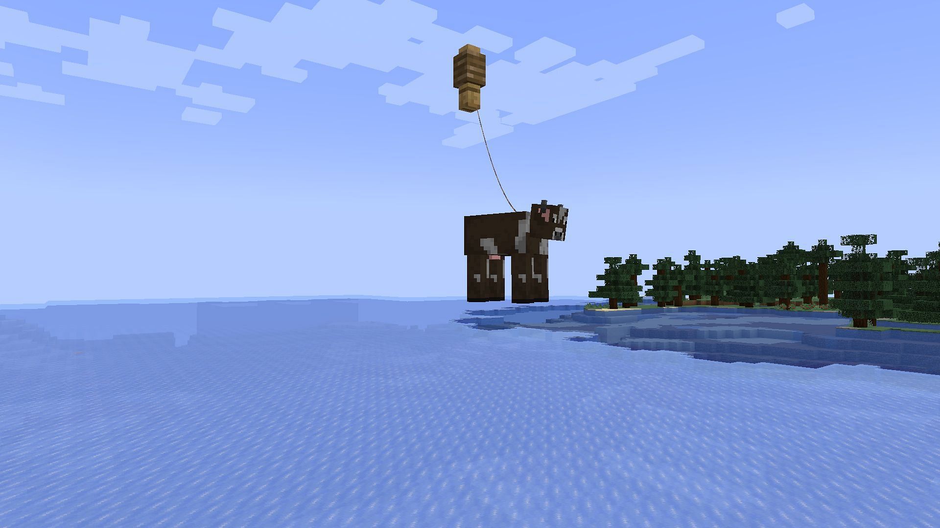 4) Mob dangles in the air if tied seven blocks high
