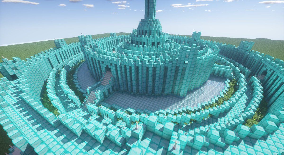 Posted on Twitter by the group Yeticraft, this build is comprised almost entirely of diamonds and is lit by end rods. The shape is somewhat reminiscent of the Imperial City seen in the Elder Scrolls series, but obviously with more sky blue coloration.