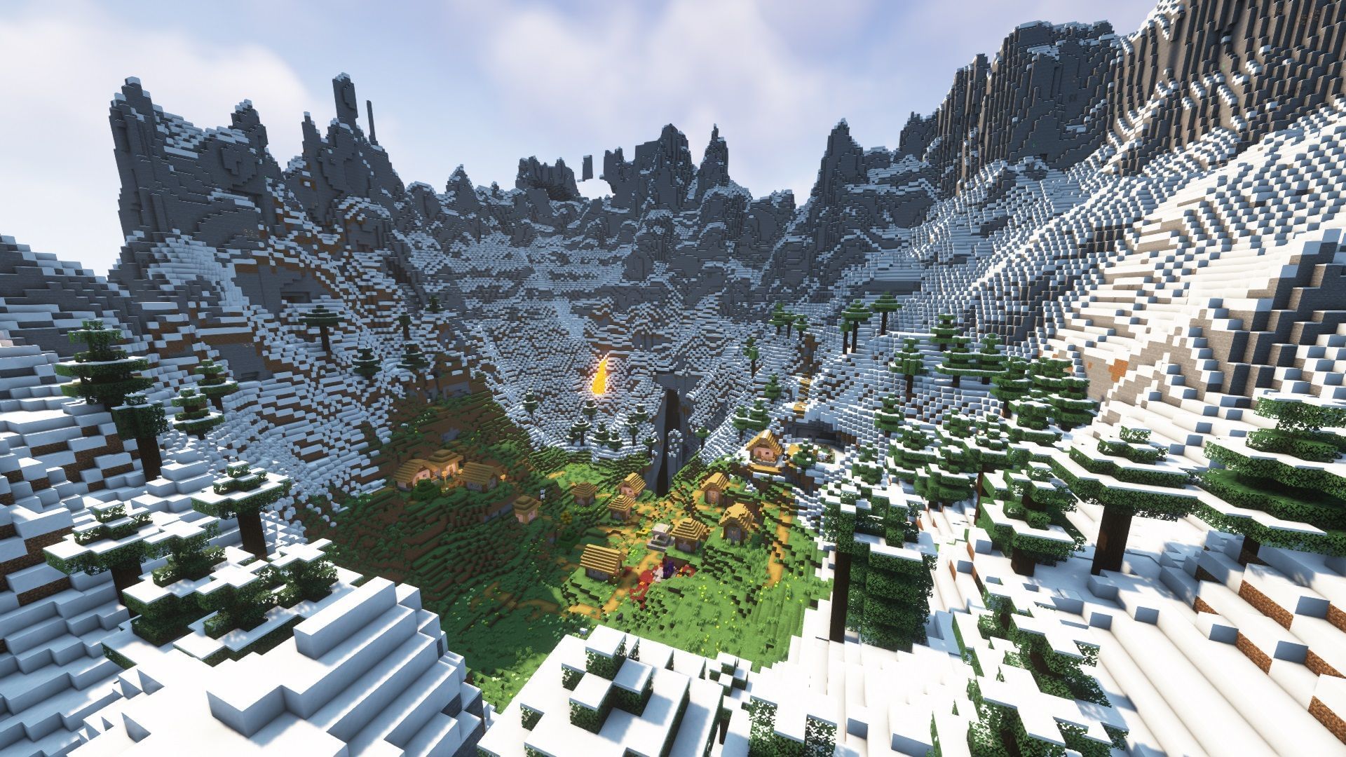 2) Village encircled by jagged peaks (Seed: -3420545272208549476)