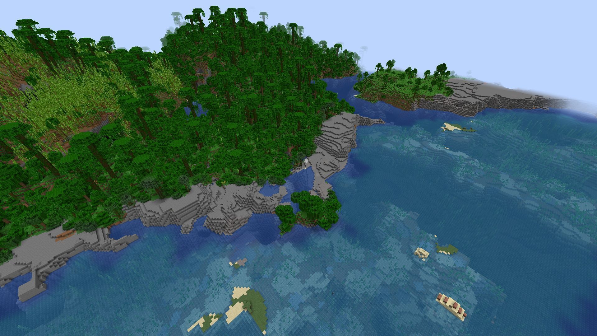 If players are tired of smaller survival islands, they may want to give this Minecraft Java seed a try. They’ll spawn atop a massive island composed mostly of jungle and forests with a few beaches and stony shores littered throughout. A small segment of badlands also rest on the southeast corner of the island at roughly (X: 273, Z: 274).